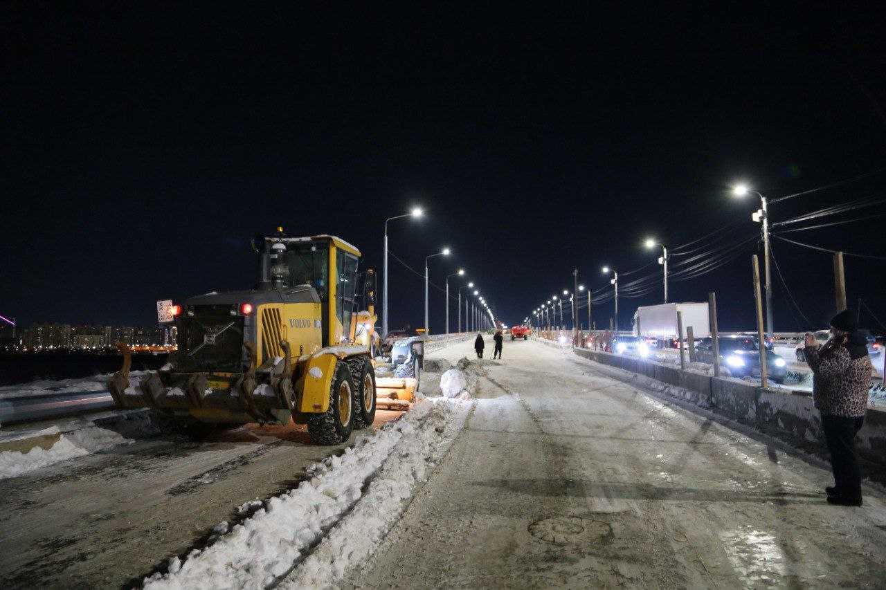 Дорожники готовят проезжую часть. Заблаговременно, в теплое время года, уложено новое асфальтобетонное покрытие. Сейчас его дополнительно чистят от снега и наледи, а также обрабатывают противогололедными материалами.