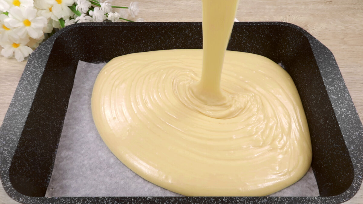 Полученную массу выливаем в предварительно подготовленную форму. По желанию можно посыпать поверхность миндальными лепестками, что добавит нотку хрустящей декоративности.