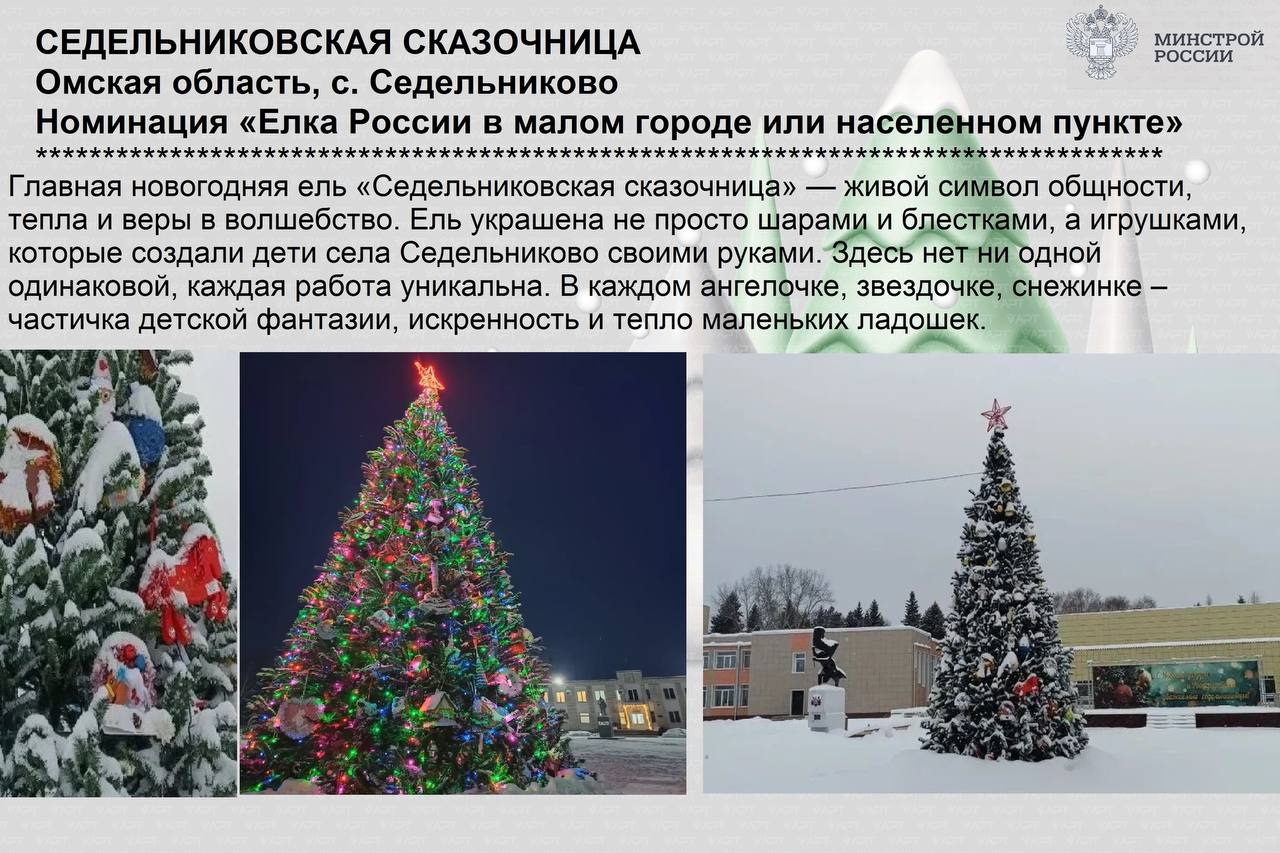 По результатам оценок лучшими признали елку из города Омска и главную ель Седельниковского района. На данный момент омская ель уступает соперницам из Донецка, Макеевки и Грозного. А вот ель, установленная в Седельниковском районе,— однозначный лидер голосования.