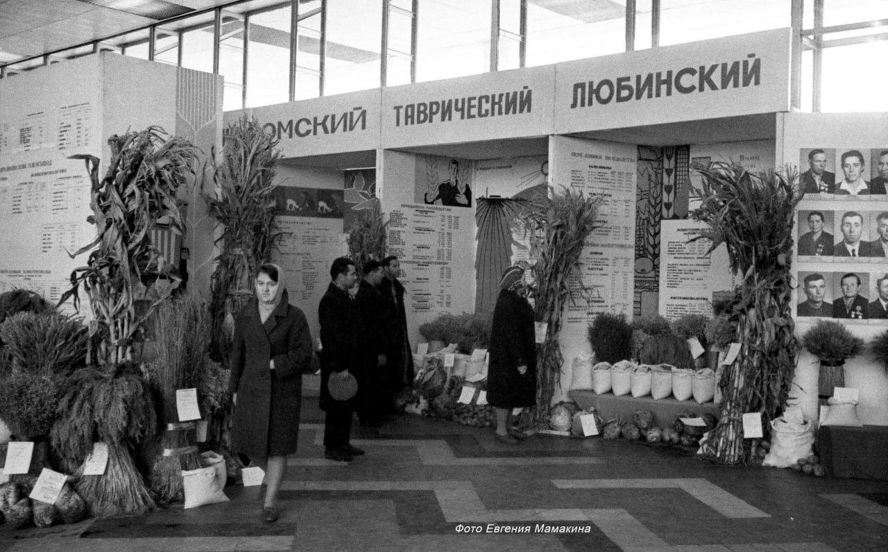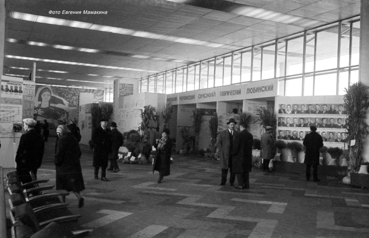 Его закончили строить в 1964 году, и почти сразу новенький вокзал начал выполнять роль омской ВДНХ. На улице размещалась сельскохозяйственная техника, а на втором этаже в просторном холле о своих достижениях рассказывали районы Омской области. В том числе можно увидеть и тогдашнюю «царицу полей» — кукурузу, хотя ее популяризатор Хрущев к тому времени уже оставил свой пост.