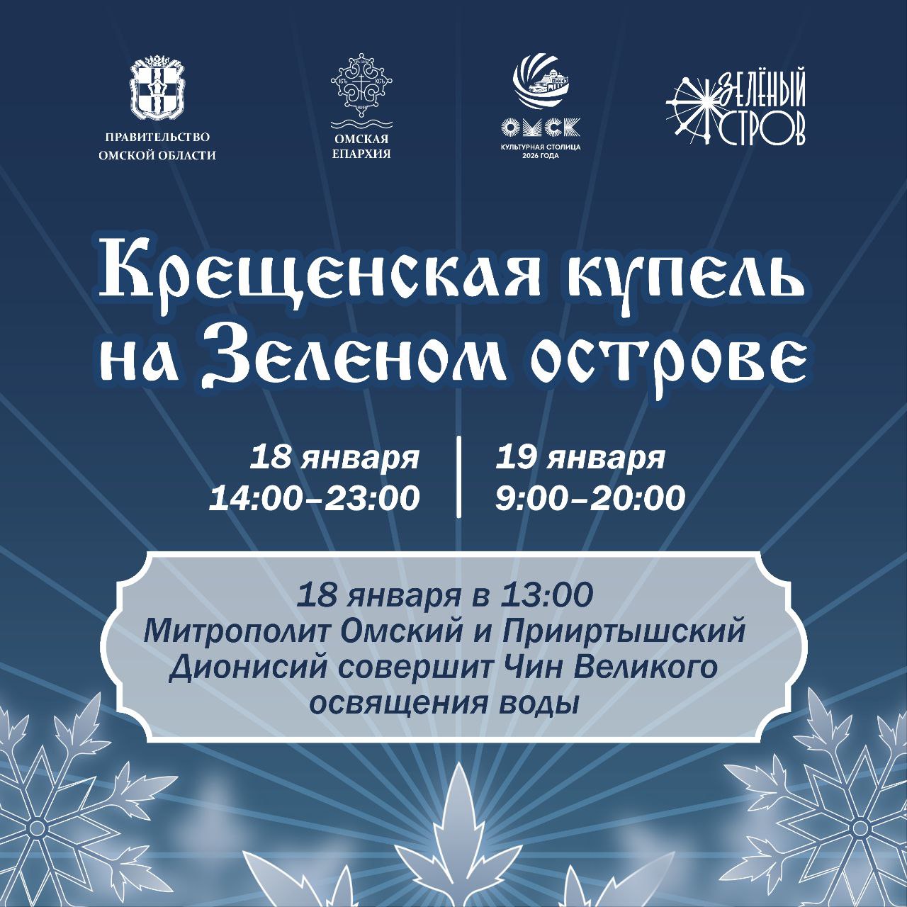 Затем 18 января с 14:00 до 23:00 и 19 января с 9:00 до 20:00 будут организованы купания. Также на территории набережной «Зеленого острова» оборудуют городок, который будет включать ледяную баню, часовню, традиционную мобильную баню, палатки для переодевания. Кроме того, здесь разместится костровая чаша, а согреться после ритуала омичи смогут бесплатным горячим чаем.