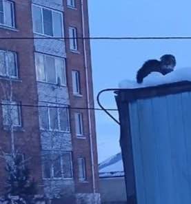 Под Омском спасли котёнка, вмерзшего в лёд на крыше гаража
