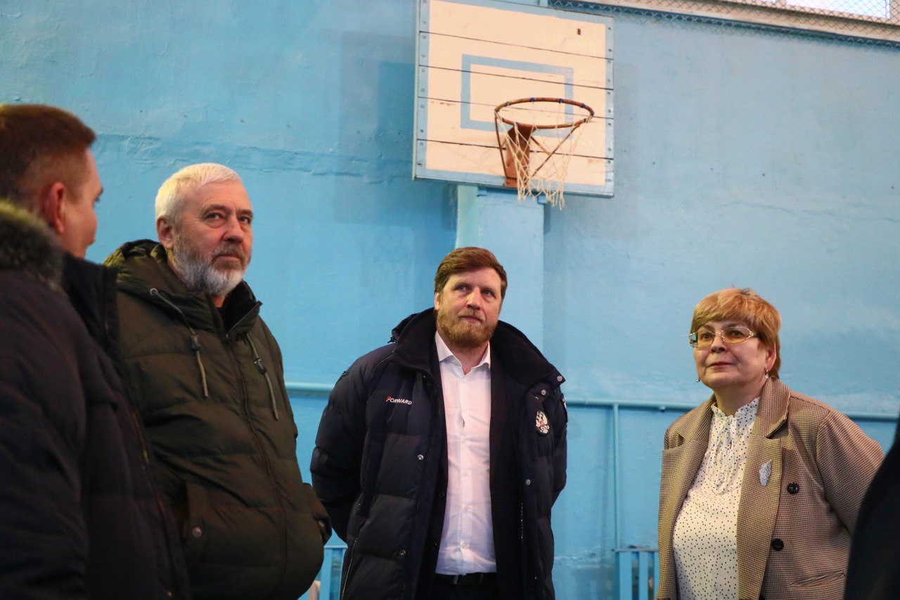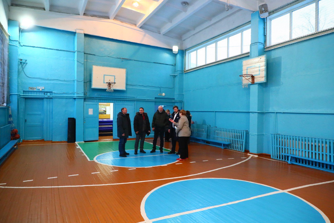 Вместе с преподавателем осмотрели спортивный зал и обсудили перспективы строительства уличной спортивной площадки.