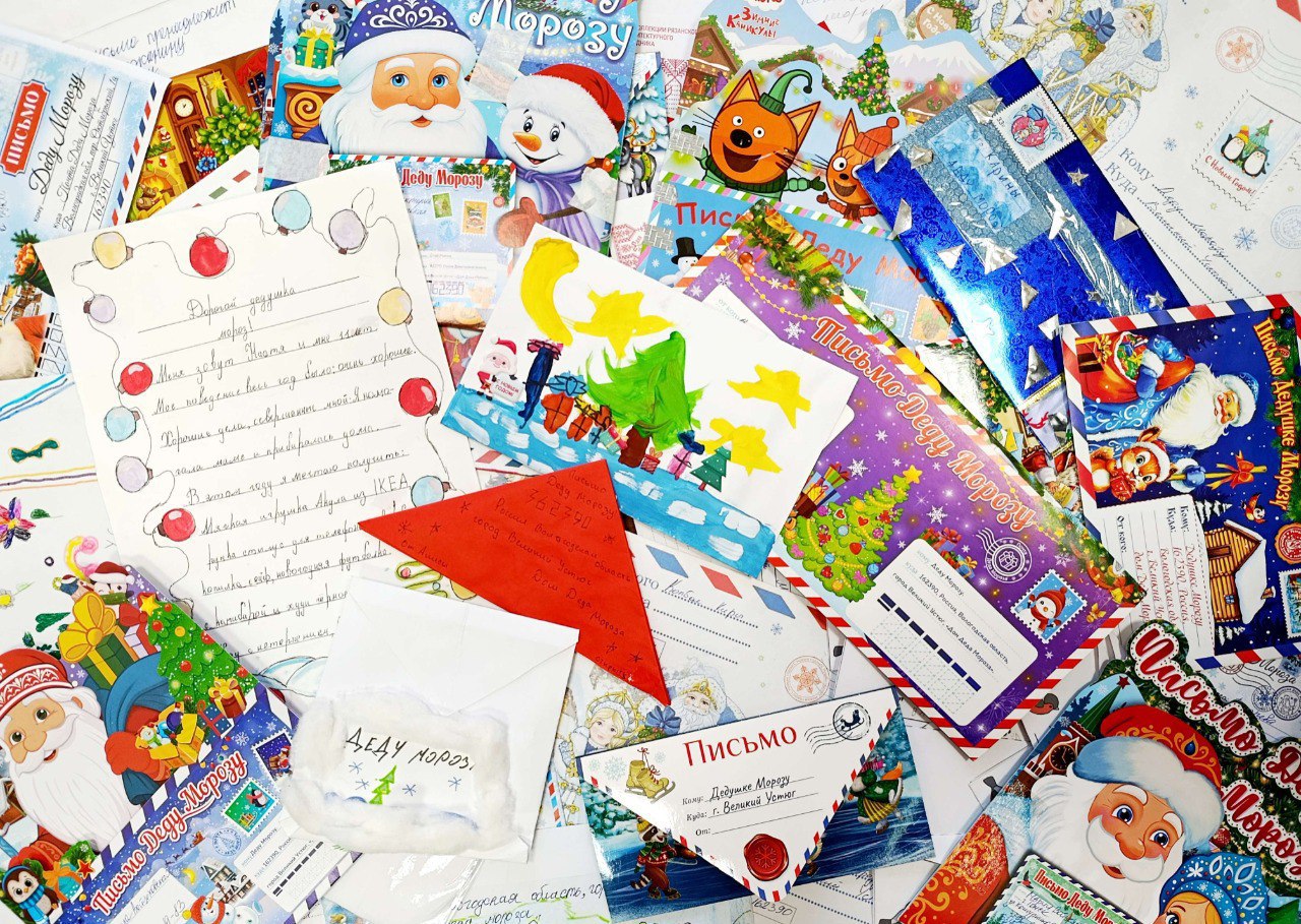 Традиция отправлять письма Деду Морозу в Великий Устюг зародилась в 1999 году. Тогда была открыта официальная резиденция новогоднего волшебника. Ей сразу же присвоили настоящий почтовый адрес: 162390, Дом Деда Мороза, Великий Устюг, Вологодская область. До этого момента письма отправляли на разные, зачастую выдуманные адреса, оставляя на конвертах пометки: «Деду Морозу в Лапландию», «Деду Морозу на Северный полюс», «Деду Морозу в тёмный лес».