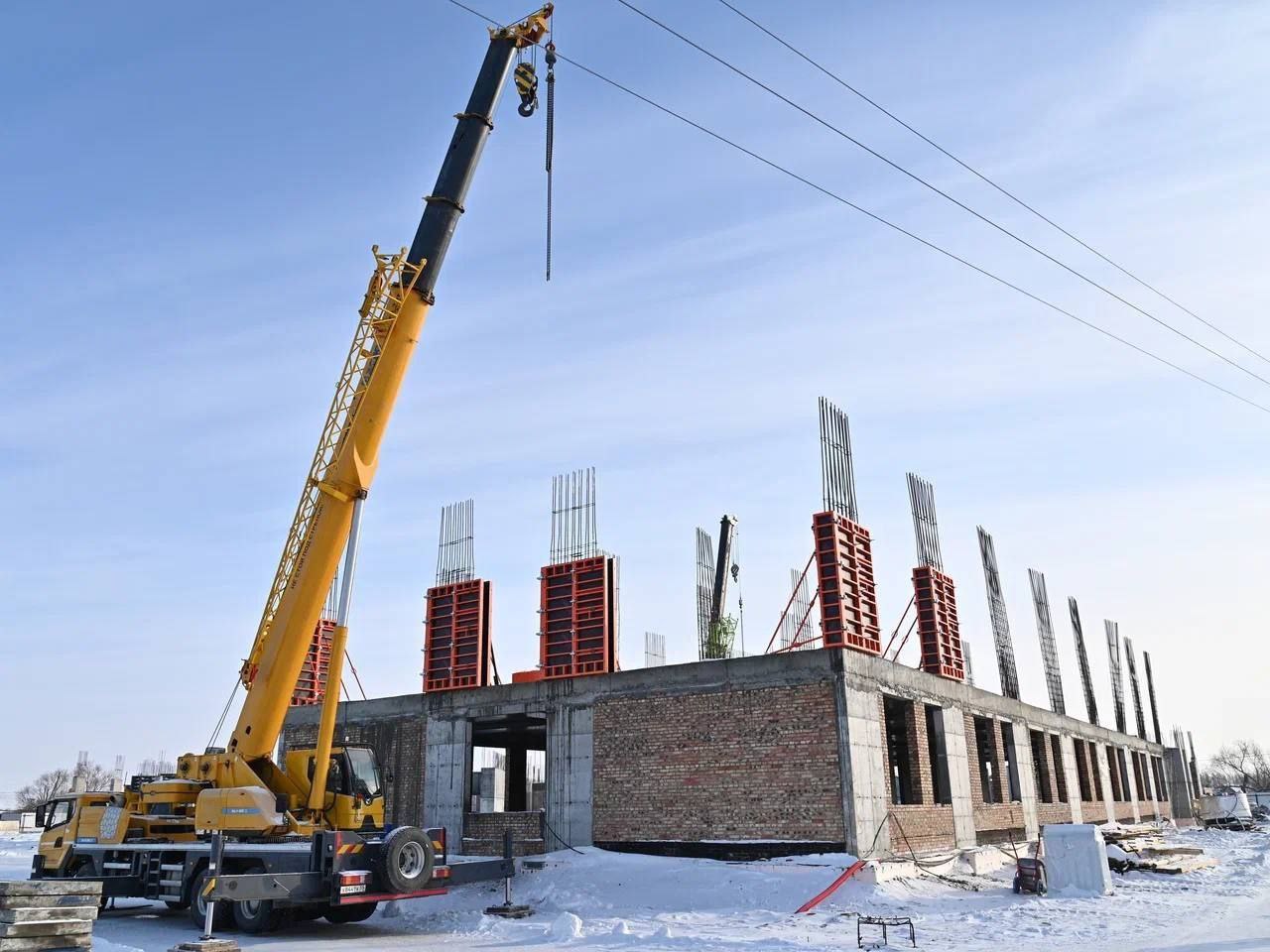 Возведение школы началось в марте 2025 года, а завершить проект планируется к 2027 году. На данный момент уже выполнены подготовительные земляные работы, идёт монтаж колонн, перекрытий и кладка стен.