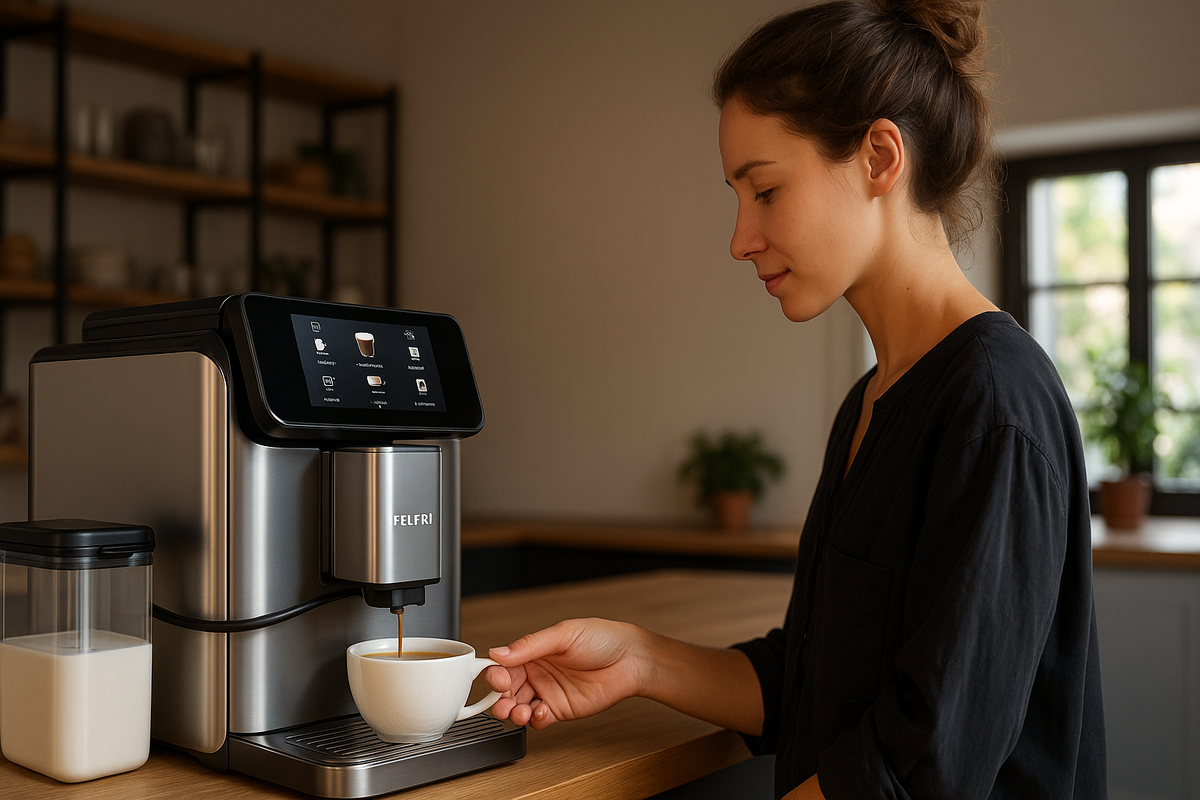 - Автоматизация: автопрограммы и напоминания на кофемашинах FELFRI облегчают процедуру.