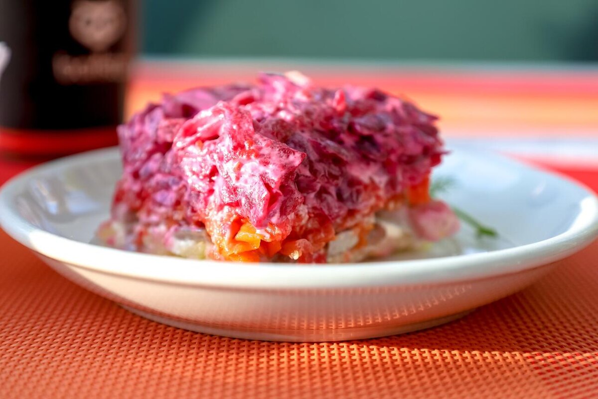 Начинают с подготовки лука: маринуют с уксусом и небольшим количеством масла, чтобы скорректировать горечь и добавить лёгкую кислинку. Затем варят картофель, морковь и свёклу так, чтобы они держали форму и давали чёткие границы слоям. Сельдь нарезают мелкими кубиками, без косточек, чтобы текстура оставалась однородной.