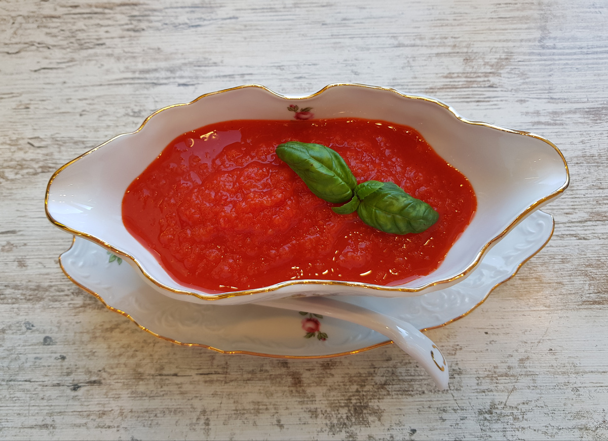 Соус прекрасно дополняет мясные блюда, но не ограничивается ими: он хорошо идёт к брускеттам и к свежему хлебу, создавая простой и приятный акцент на столе.