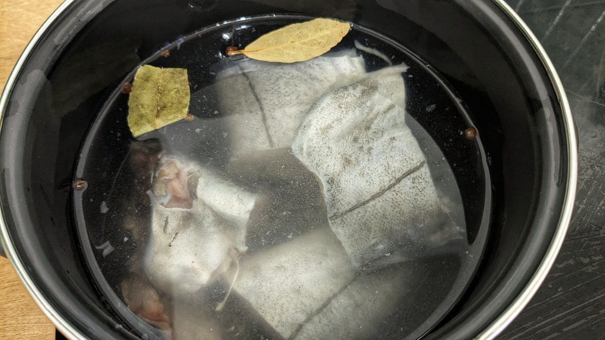 Начинать следует с подготовки рыбы: её необходимо почистить, нарезать крупными кусками и отварить в воде с добавлением лаврового листа и перца. Не забудьте добавить немного соли. Бульон не выливать — он пригодится позже. Остывшую рыбу разбирают на кусочки, удаляя кожу и кости.