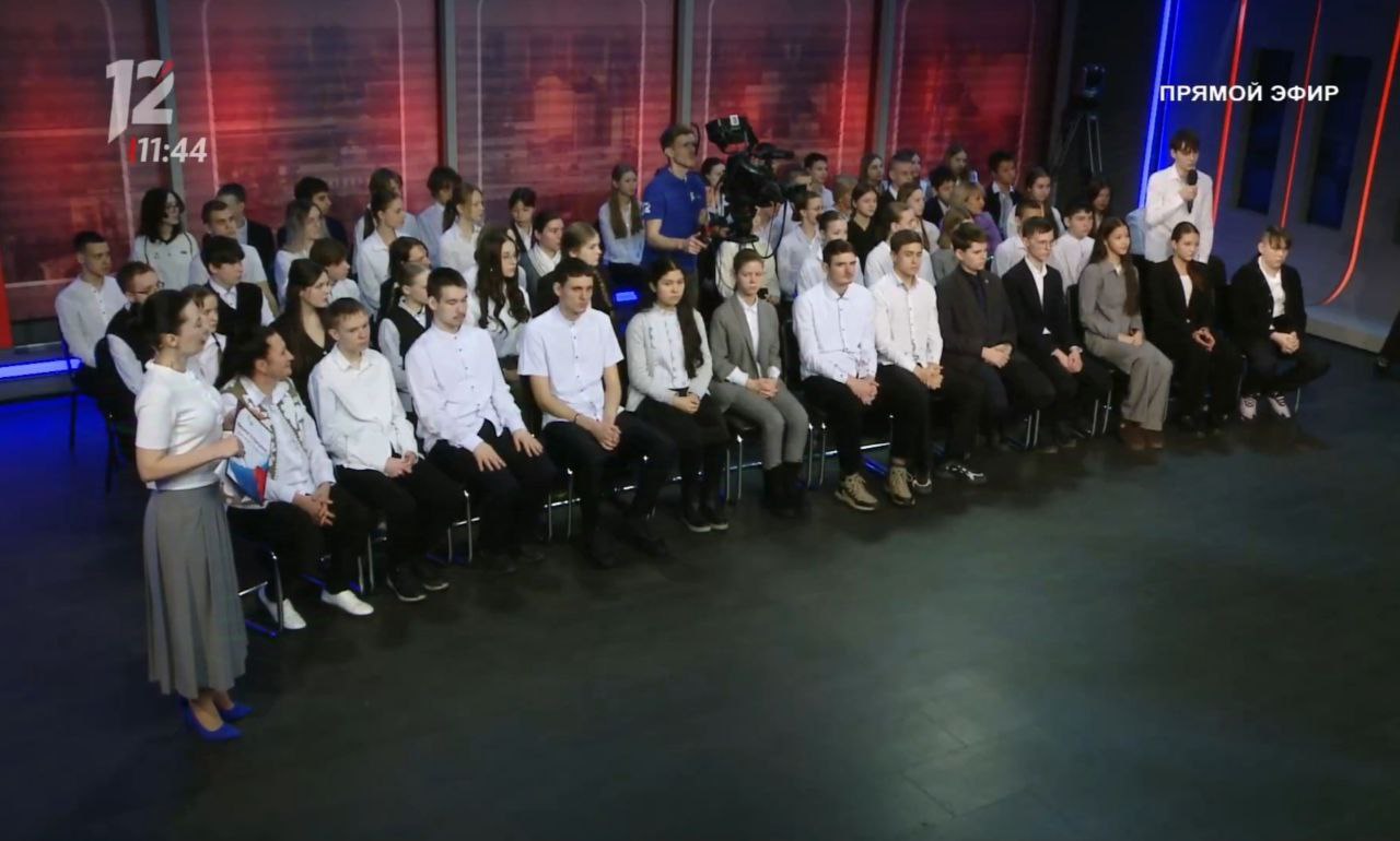 Обращаясь к старшеклассникам в студии, ветеран пригласил их на завод, рассказав о программах поддержки молодых специалистов.