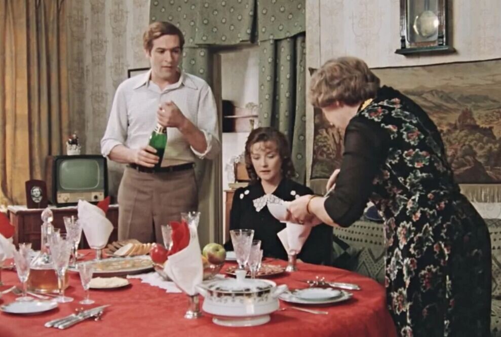 Это именно тот салат, который может произвести впечатление на будущую невестку или стать символом важного события. Лучший пример — сцена из фильма «Москва слезам не верит», где главный герой Родион и его семья пытаются произвести благоприятное впечатление на свою гостью. Здесь отец с коньяком в руках читать мораль о «твёрдой мужской руке», а мать, без лишнего напоминания, демонстрирует статус своей семьи через идеально приготовленный «Столичный».