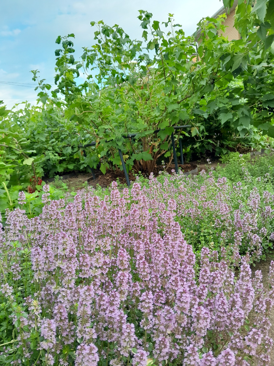 - Здоровье растений: Под защитой тимьяна кусты смородины и жимолости стали более устойчивыми к болезням и вредителям.