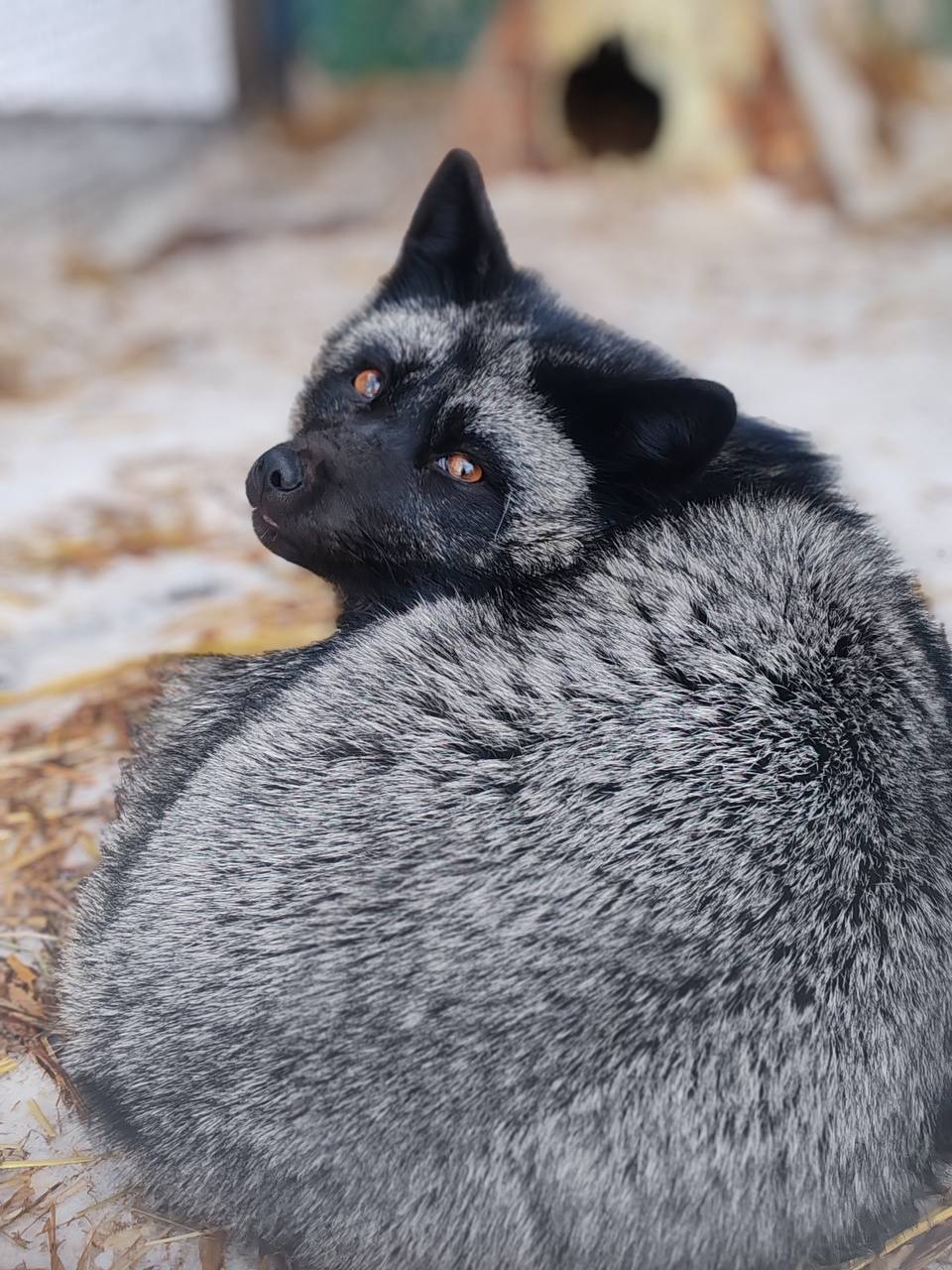 В зоопарке показали чернобурую лисицу — редкую цветовую форму обычной рыжей. Её мех может быть почти чёрным с серебристым отливом, из-за чего таких лисиц часто называют «ночными призраками леса».