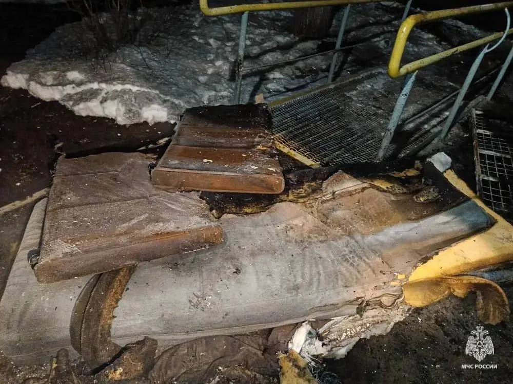 В девятиэтажном доме на улице Омской вечером произошёл пожар — в тамбуре на первом этаже загорелись диваны. Из-за горящего поролона дым быстро распространился по всему подъезду, от первого до девятого этажа.