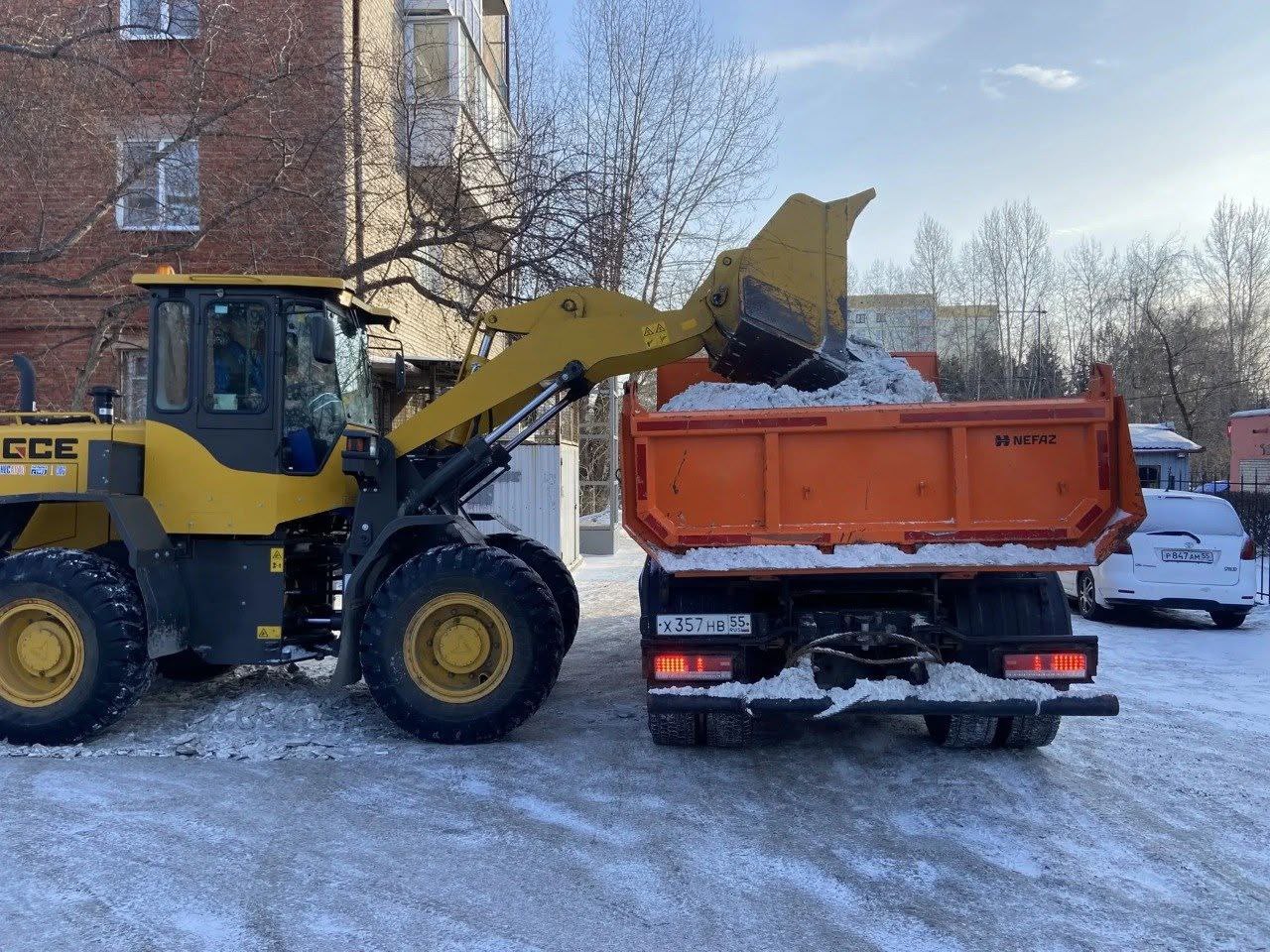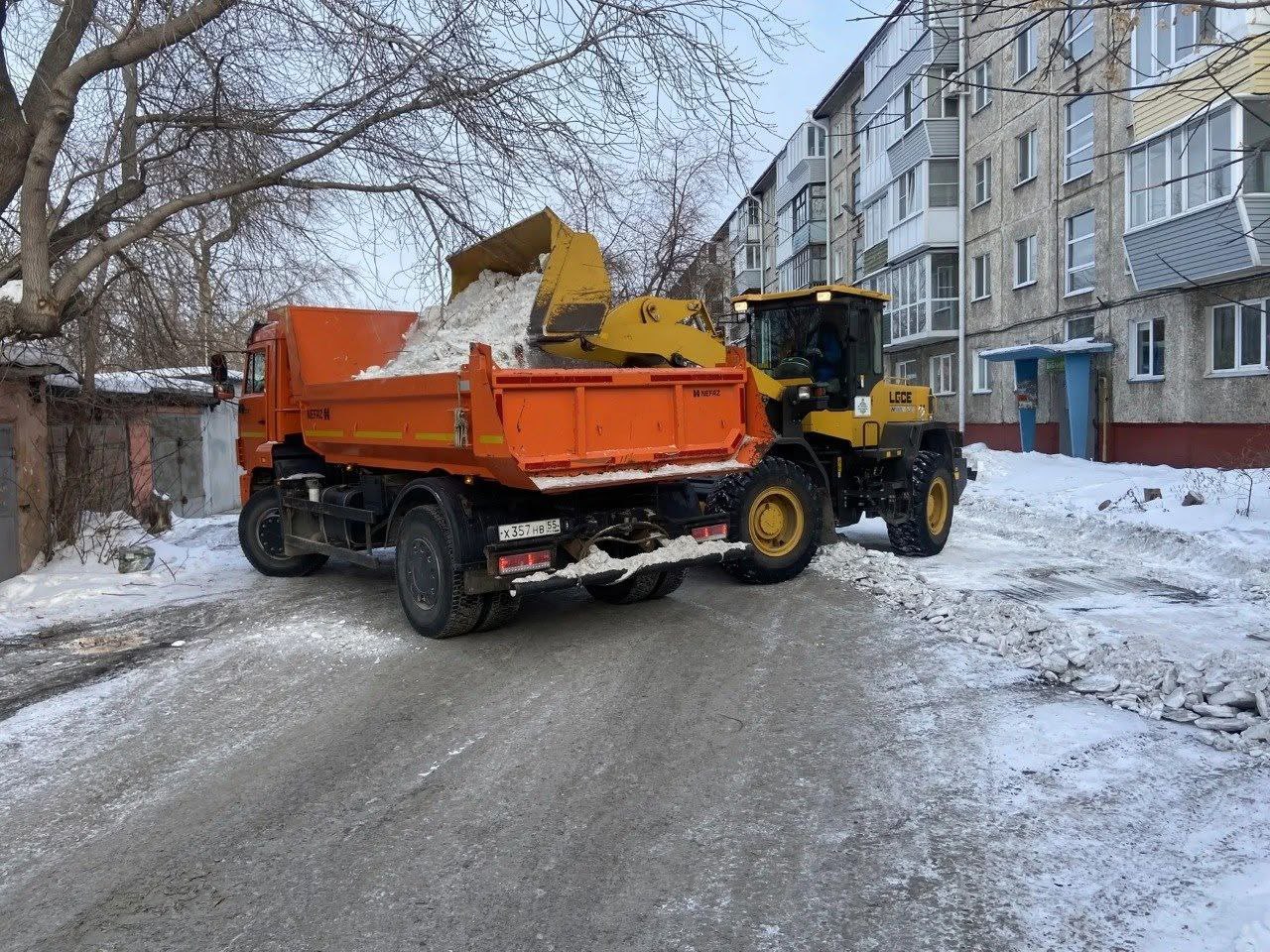 Омские дорожники активно расчищают магистрали, тротуары и дворы от снега и наледи.