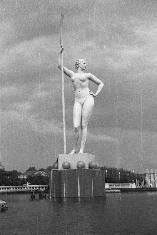 В 1934 году Иван Шадр начал работу над скульптурой «Девушка с веслом» для ЦПКиО имени Горького в Москве. Скульптура была установлена в центре фонтана на главной магистрали Парка имени Горького в 1935 году. Однако она подверглась критике и в том же году ее переместили в Парк культуры и отдыха имени Горького Луганска. Ее уменьшенная копия хранится в Третьяковской галерее. К лету 1936 года Шадр создал новую увеличенную восьмиметровую скульптуру из тонированного бетона. Новую «Девушку с веслом» установили в центре фонтана на прежнем месте. Скульптура была разрушена в 1941 году при бомбёжке.
