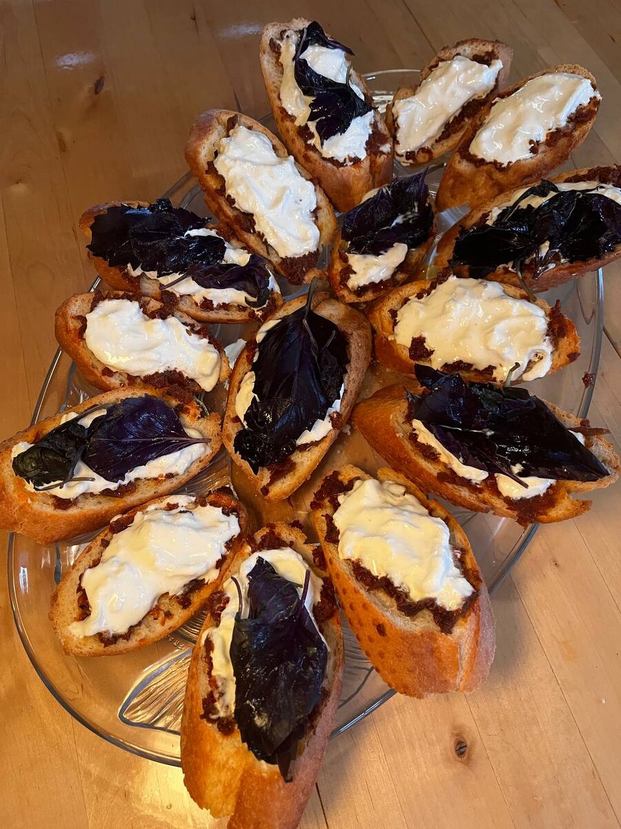 Во время подготовки к встрече с друзьями неожиданно оказалось, что брускетты с вялеными томатами, страчателлой и зелёным базиликом стали настоящим хитом среди всех угощений. Даже владельцы домашнего стола признались, что они – любимцы вечера.