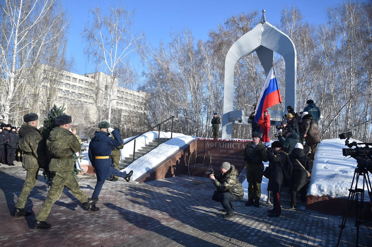 Митинг и церемонию возложения венка и цветов к памятнику «Воинам-омичам, исполнившим долг до конца, ратную славу приумножившим» организовали 15 февраля, в День памяти о россиянах, исполнявших служебный долг за пределами Отечества.