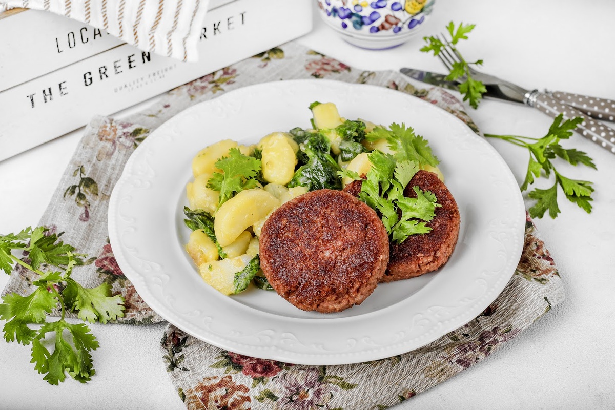 В сковороде разогрейте столовую ложку растительного масла и обжарьте котлеты по 3-4 минуты с каждой стороны. Подавайте горячие котлеты с картофелем по-далматински немедленно!