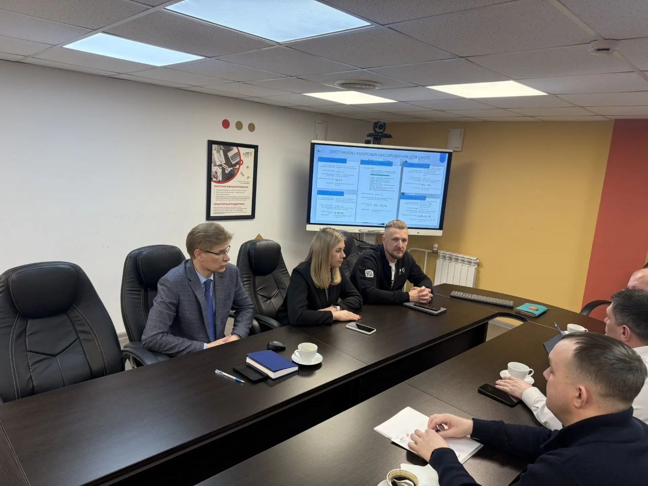 Участник программы «ПРОдвижение ГЕРОЕВ» Иван Цветков встретился с первым заместителем министра экономического развития Денисом Кушнером, управляющим центром «Мой бизнес» Александром Осмининым и руководителями профильных направлений. Темой встречи стали действующие в регионе меры поддержки предпринимательства. Цветкову подробно рассказали о возможностях открытия собственного дела: презентовали инфраструктуру поддержки малого бизнеса, образовательные программы, помощь в оформлении поручительств, а также сервисы для начинающих предпринимателей и экспортеров.