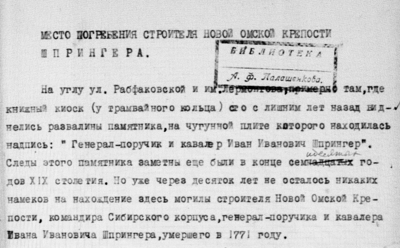 Устроитель новой Омской крепости: памяти Шпрингера