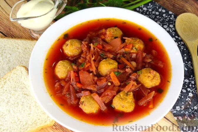 Сначала спробуйте приготовить борщ с куриными фрикадельками, сладким перцем и чесноком — это яркое сочетание принесет новые впечатления. Все ингредиенты, такие как капуста, свекла и различные специи, гарантируют насыщенный вкус.