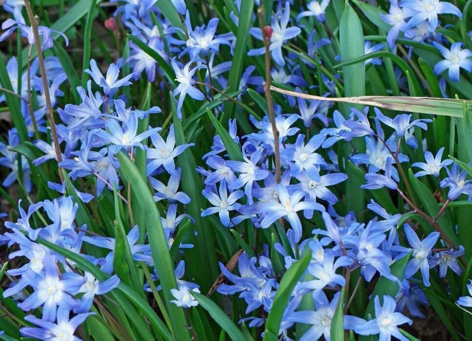 С приходом весны, как только тает снег, на свет выбираются узкие, тёмно-зелёные листья хионодоксы и стремительные цветоносы длиной 15-20 см. На каждом из них распускаются до трёх чудесных цветков, окрашенных в белый, розовый, голубой, синий и фиолетовый оттенки. Их цветение длится около двух недель, а если высадить несколько луковиц на расстоянии 3 см друг от друга, то через 2-3 года можно насладиться великолепием небольших куртинок.