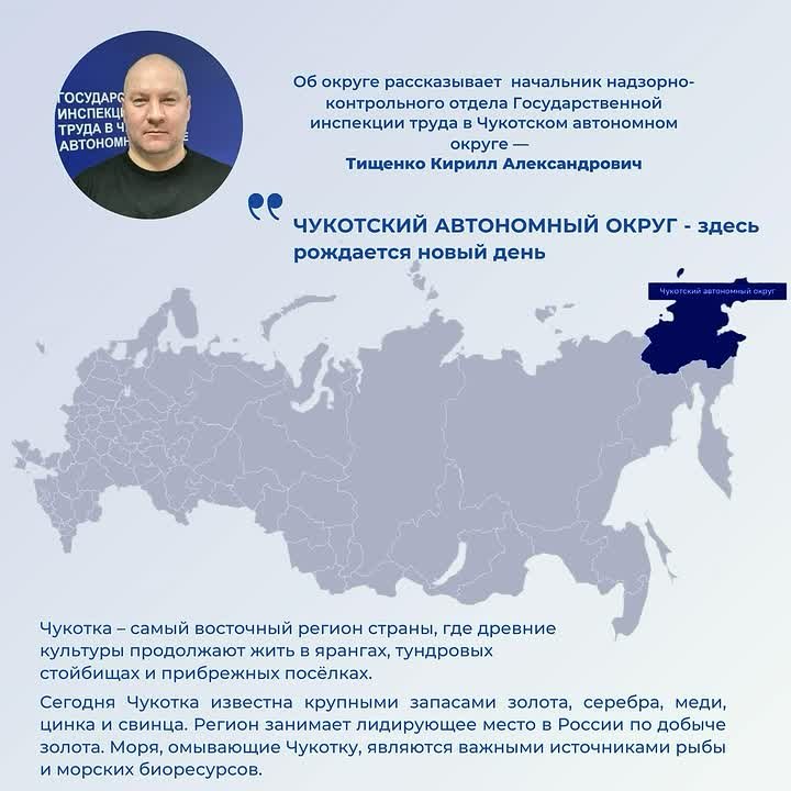 В нашей новой рубрике, посвященной «Году единства народов России» сотрудники Роструда расскажут о каждом из 89 регионов Российской Федерации. Сегодня особенностями и уникальными фактами поделятся сотрудники инспекций труда в Тамбовской и Омской областях, Чукотском автономном округе, Донецкой Народной Республике.