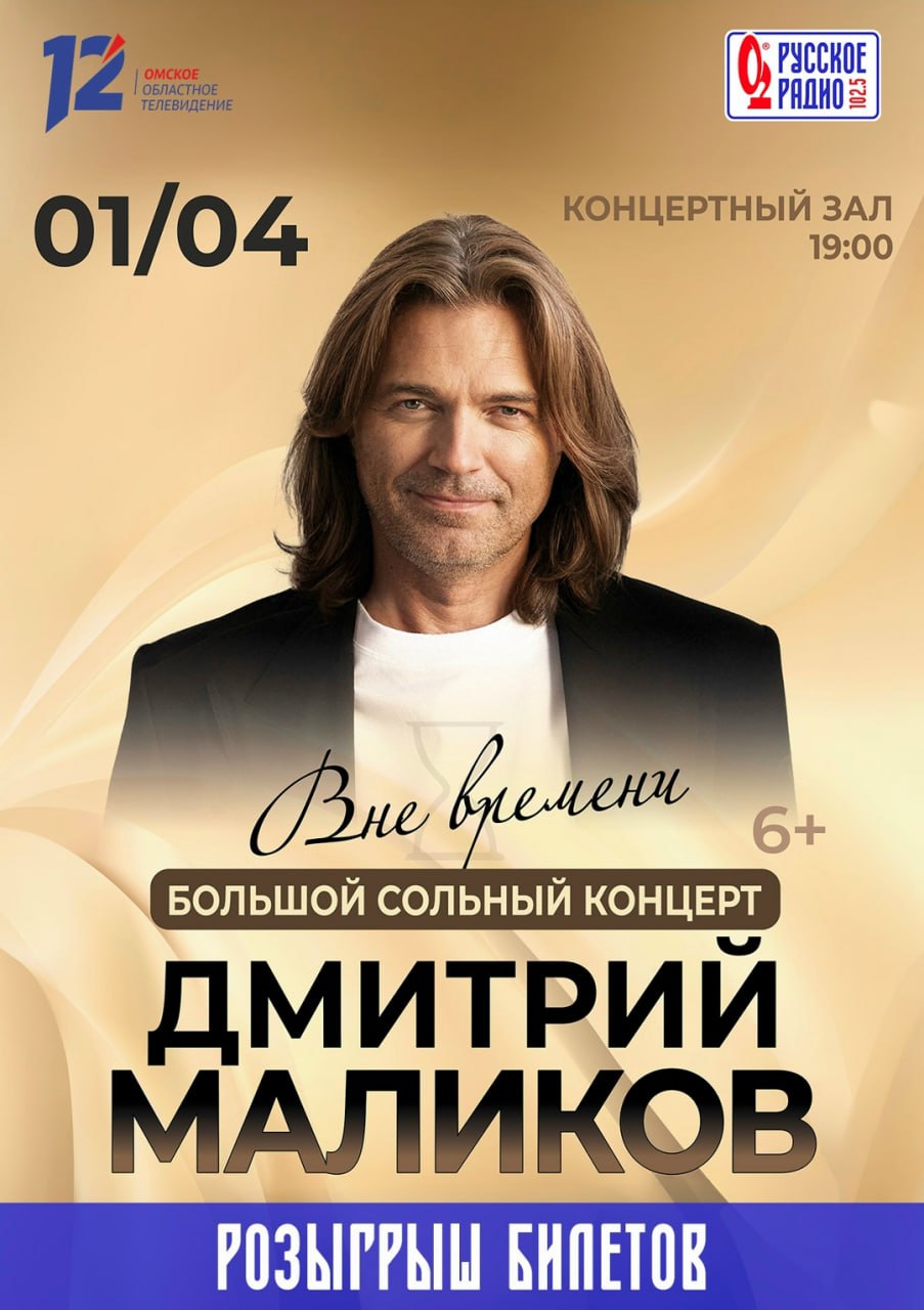 Русское Радио Омск совместно с 12 каналом проводит розыгрыш двух билетов на концерт Дмитрия Маликова. Результаты объявим 17 марта