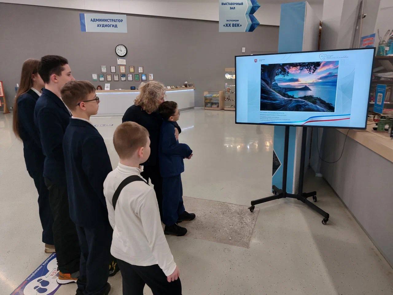 Омичи уже просматривают экспозиции, собранные к 10-летию воссоединения Крыма с Россией, на медиаэкранах в Историческом парке «Россия - моя история».