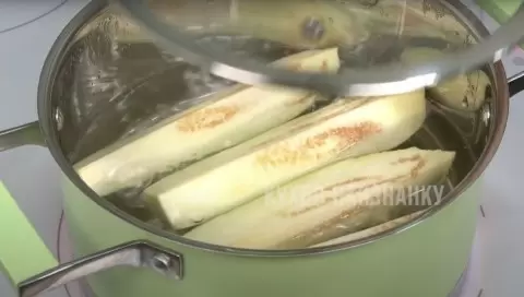 Чтобы подготовить этот яркий десерт, первым делом баклажаны очищают от кожицы и нарезают на кусочки среднего размера. Затем их погружают в кипящую воду и варят 8 минут, чтобы они стали мягкими. После этого нарезку следует немного доработать: каждый кусочек можно разделить на 4 части или нарезать кубиками, в зависимости от предпочтений.