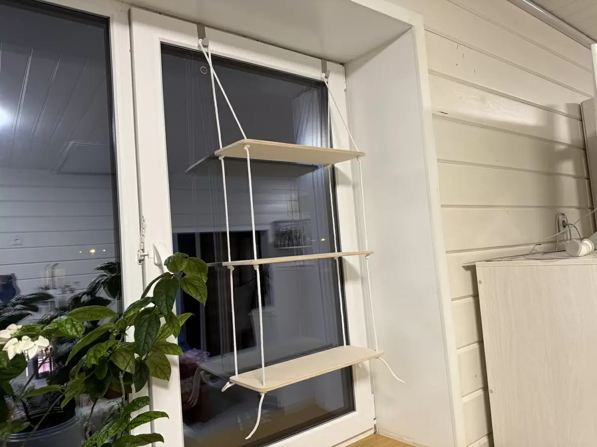 Мечта о трехъярусной полке для рассады наконец-то сбылась. Благодаря простому дизайну - три дощечки, веревка и два крючка - монтаж занимает считанные минуты. Полка удобно крепится к оконной раме, освобождая драгоценное пространство.