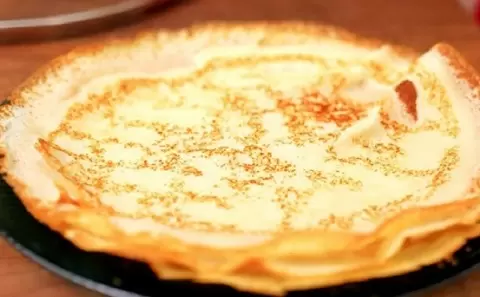 Каждый блин нужно жарить на хорошо разогретой сковороде, наливать тесто равномерно, чтобы получить идеальные тонкие лепешки. При использовании сковороды диаметром 26 см получится примерно 15 блинчиков, которые подойдут для большой компании и семейных обедов.