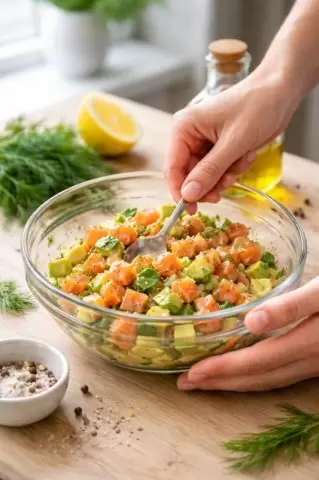 Не умея готовить, можно легко удивить собеседника и повысить свою кулинарную репутацию с помощью этого изысканного блюда. Тартар из лосося с авокадо — отличное решение, которое не оставит равнодушным никого.