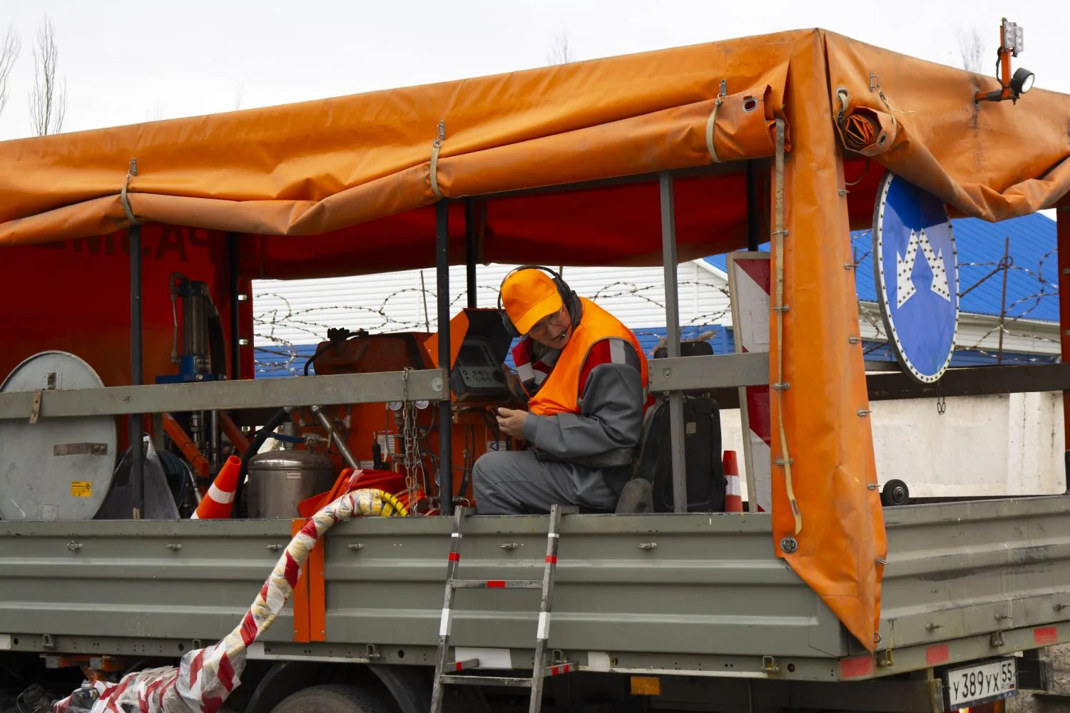 Используются современные материалы: дорожная краска и пластик. Размечают двойные сплошные, пунктиры, «зебры» и стоп-линии.