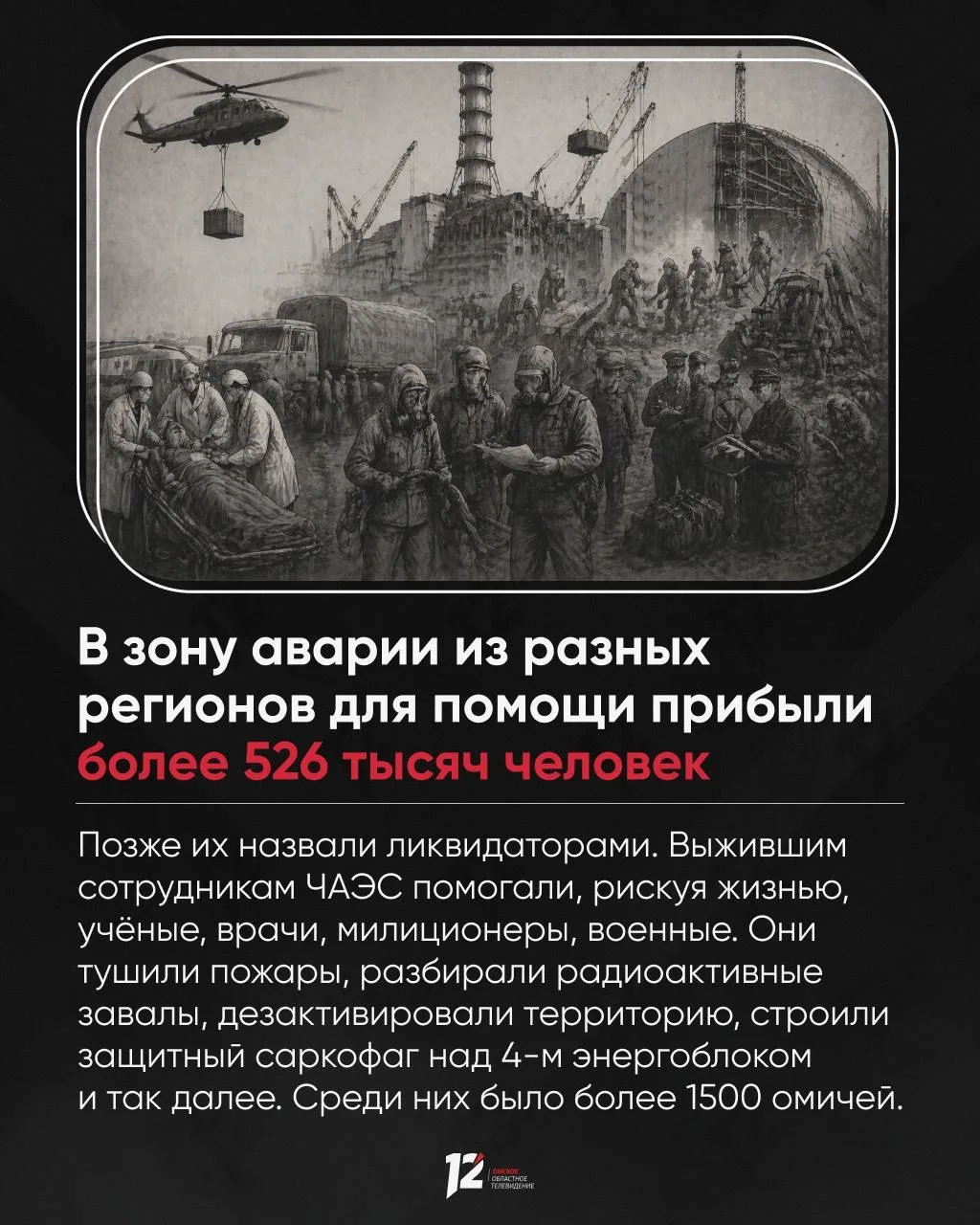 Трагедия случилась 26 апреля 1986 года. Сейчас ещё живы участники ликвидации Чернобыльской аварии, которую называют крупнейшей радиационной катастрофой в истории. Бороться с её последствиям, рискуя жизнью и здоровьем, помогали тысячи специалистов из разных городов, в том числе и омичи.