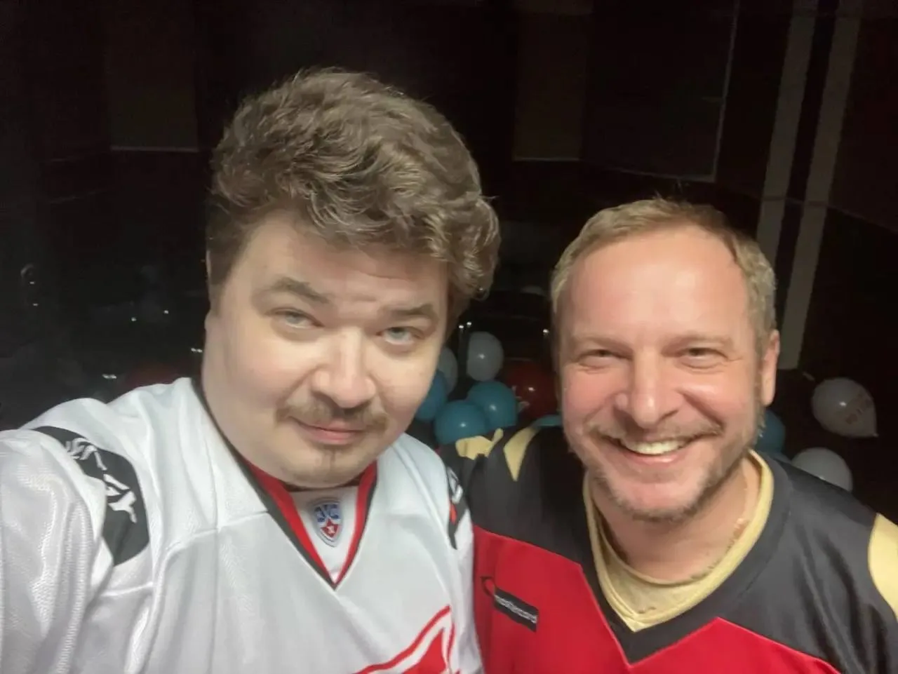 Третий период началсяНаши комментаторы Антон Руднев и Роман Малевич тоже серьёзно подготовились. Сегодня они в джерси и по традиции плей-офф отращивают бородыБолеем за «ястребов». Накидаем сердечек нашим парням