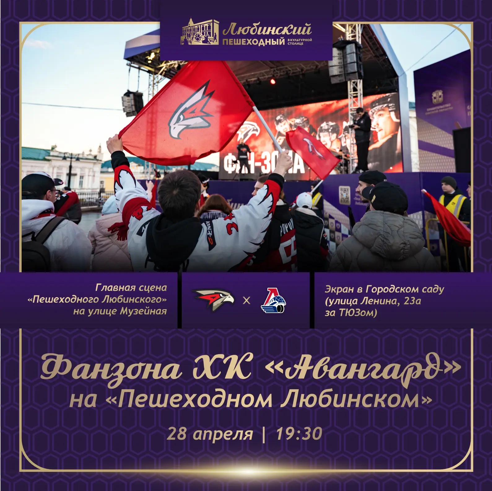 Не пропустите трансляцию матча на главной сцене «Пешеходного Любинского» и в Городском саду!