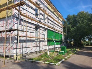 Сейчас подрядчик подводит кабели электропроводки к розеткам и выключателям на первом этаже. На втором этаже устанавливают перегородки. Рабочие также монтируют откосы и подоконники, укладывают утеплители на фасаде здания и готовят грунт под отмостку....