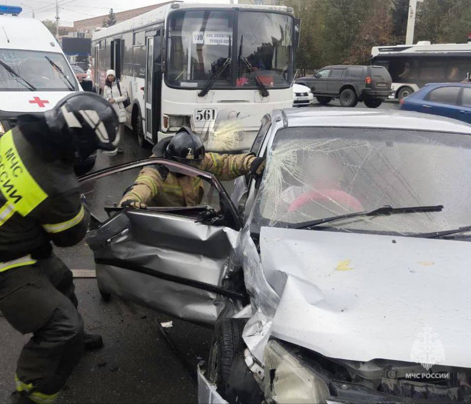 На месте аварии возле остановки «Городок Водников» работали 4 сотрудника МЧС России.От удара передняя стойка «Мазды» сильно повредилась, что помешало девушке, которая находилась внутри, самостоятельно выйти из машины. Убедившись, что нет розлива...