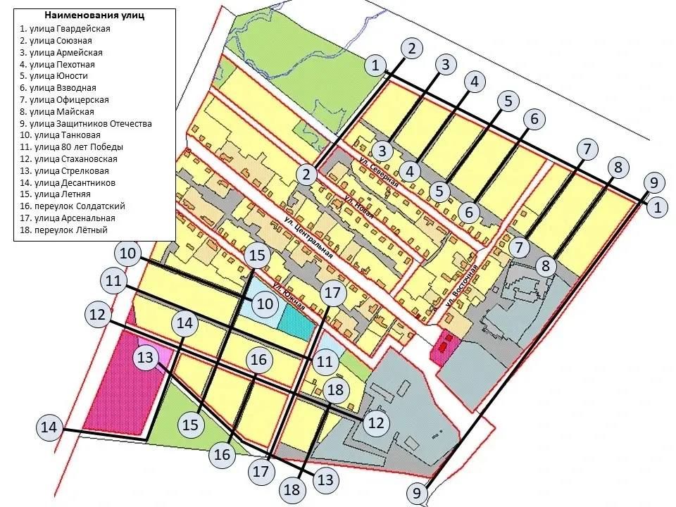 В секторе индивидуальной жилой застройки Ленинского округа названия получили 16 улиц и два переулка.Среди них: Гвардейская, Армейская, Офицерская, Союзная, Пехотная, Взводная, Юности, Майская, Защитников Отечества, Танковая, 80 лет Победы...