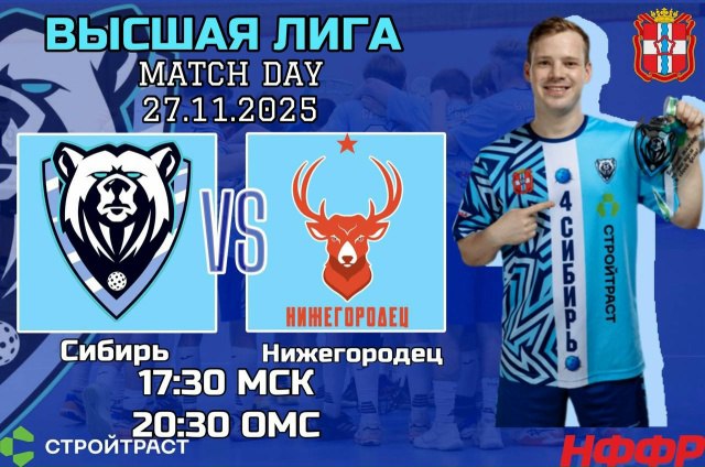 "Сибирь" сегодня проведет матч с "Нижегородцем" в рамках 2-го тура чемпионата России по флорболу среди команд Высшей лиги