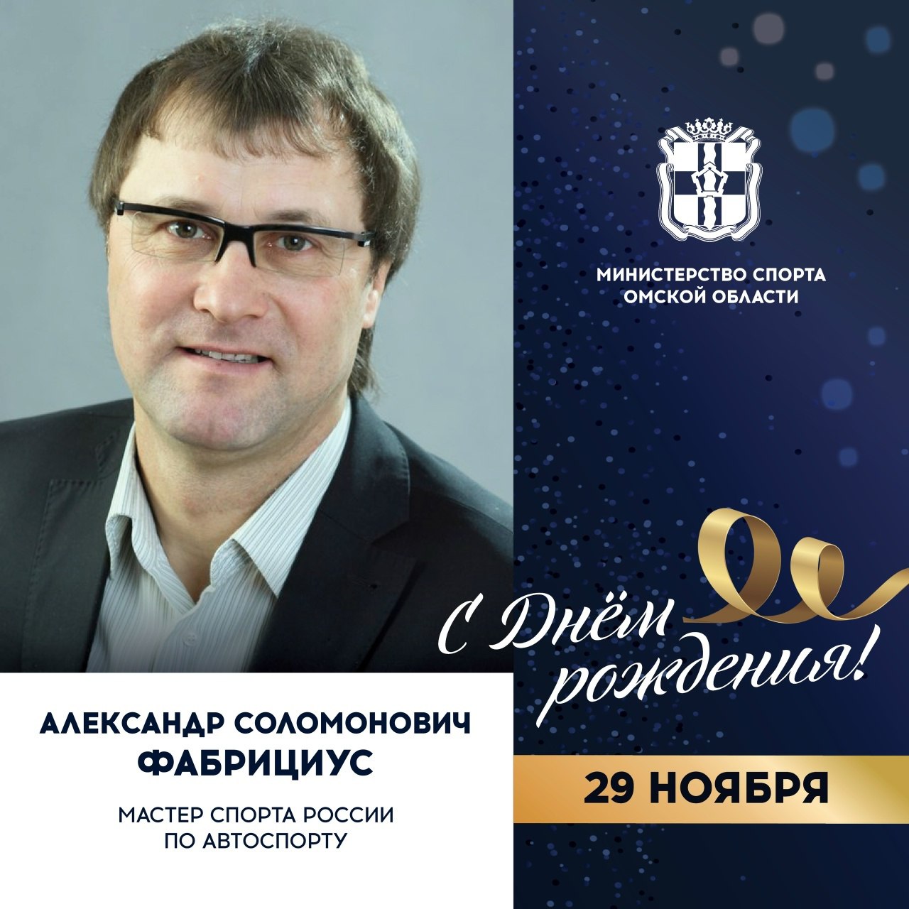 Сегодня ДЕНЬ РОЖДЕНИЯ отмечает мастер спорта России по автоспорту и водно-моторному спорту, 2-кратный чемпион России, 10-кратный обладатель Кубка России, 3-кратный обладатель Кубка Сибири по автоспорту, многократный чемпион Омской области по автомногоборью, автокроссу и зимним трековым гонкам Александр ФАБРИЦИУС.