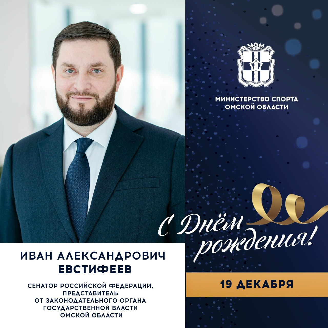 Сегодня ДЕНЬ РОЖДЕНИЯ празднует сенатор Российской Федерации, представитель от законодательного органа государственной власти Омской области Иван ЕВСТИФЕЕВ.