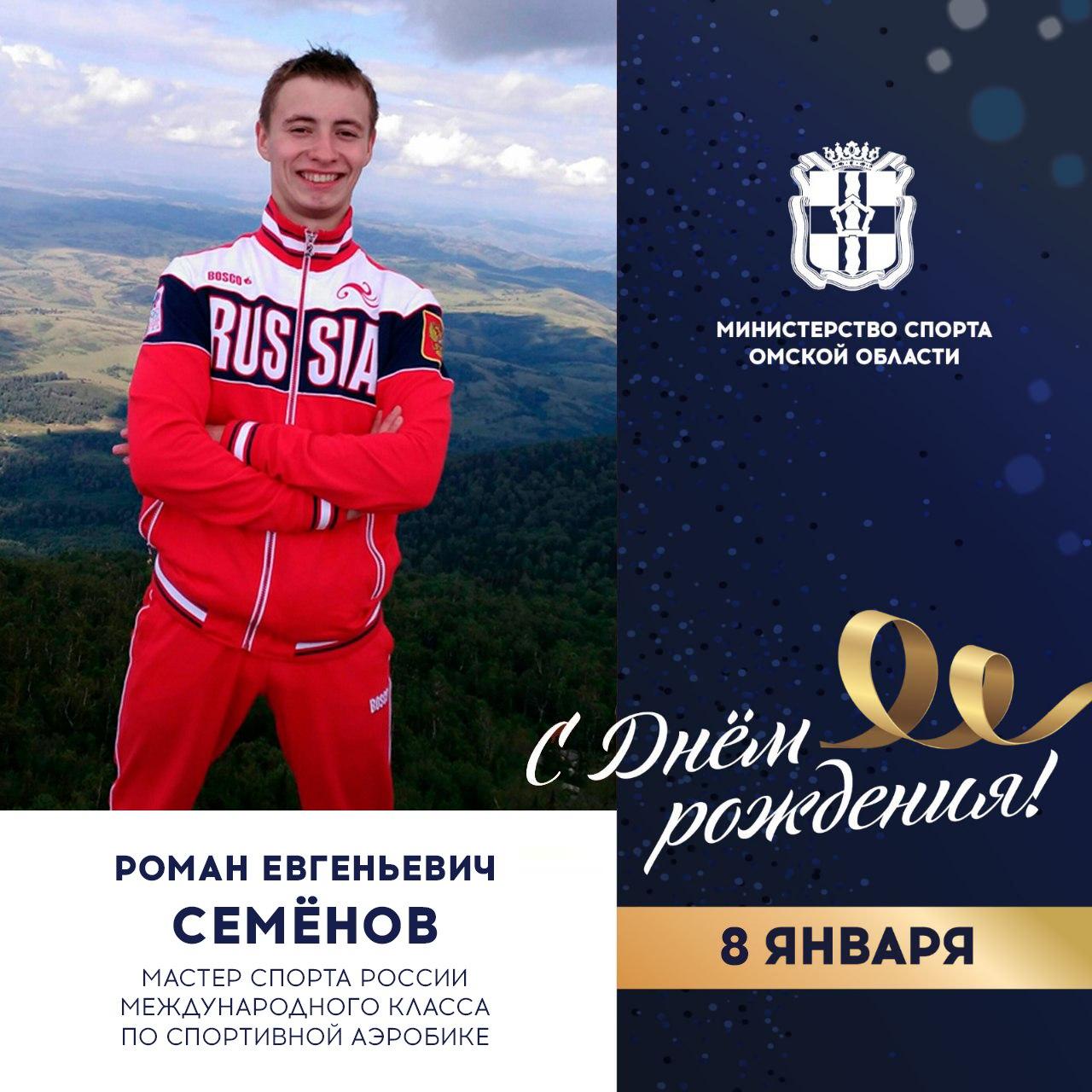 Сегодня ДЕНЬ РОЖДЕНИЯ празднует мастер спорта России международного класса по спортивной аэробике, чемпион мира и Европы, победитель II Европейских Игр, многократный чемпион России и обладатель Кубка страны Роман СЕМЁНОВ.