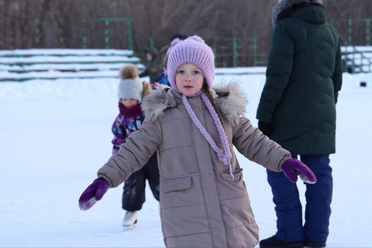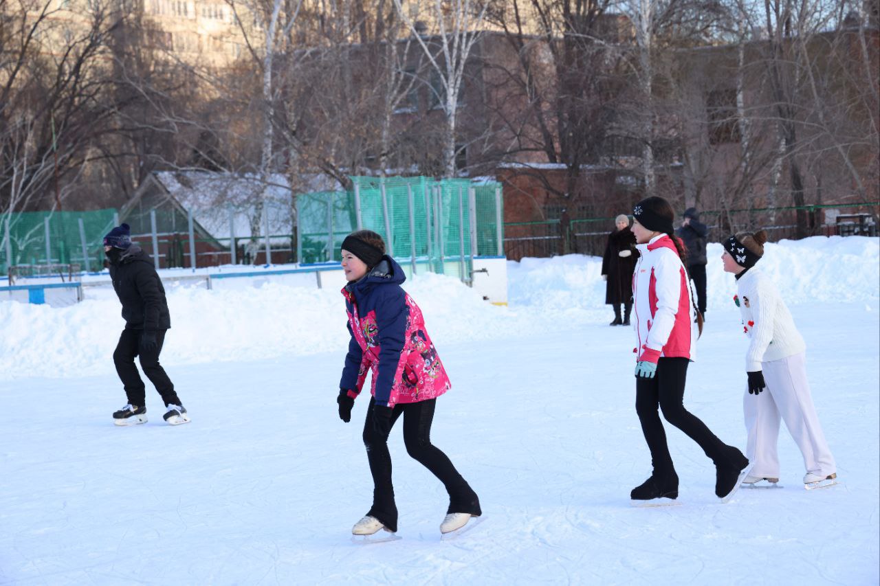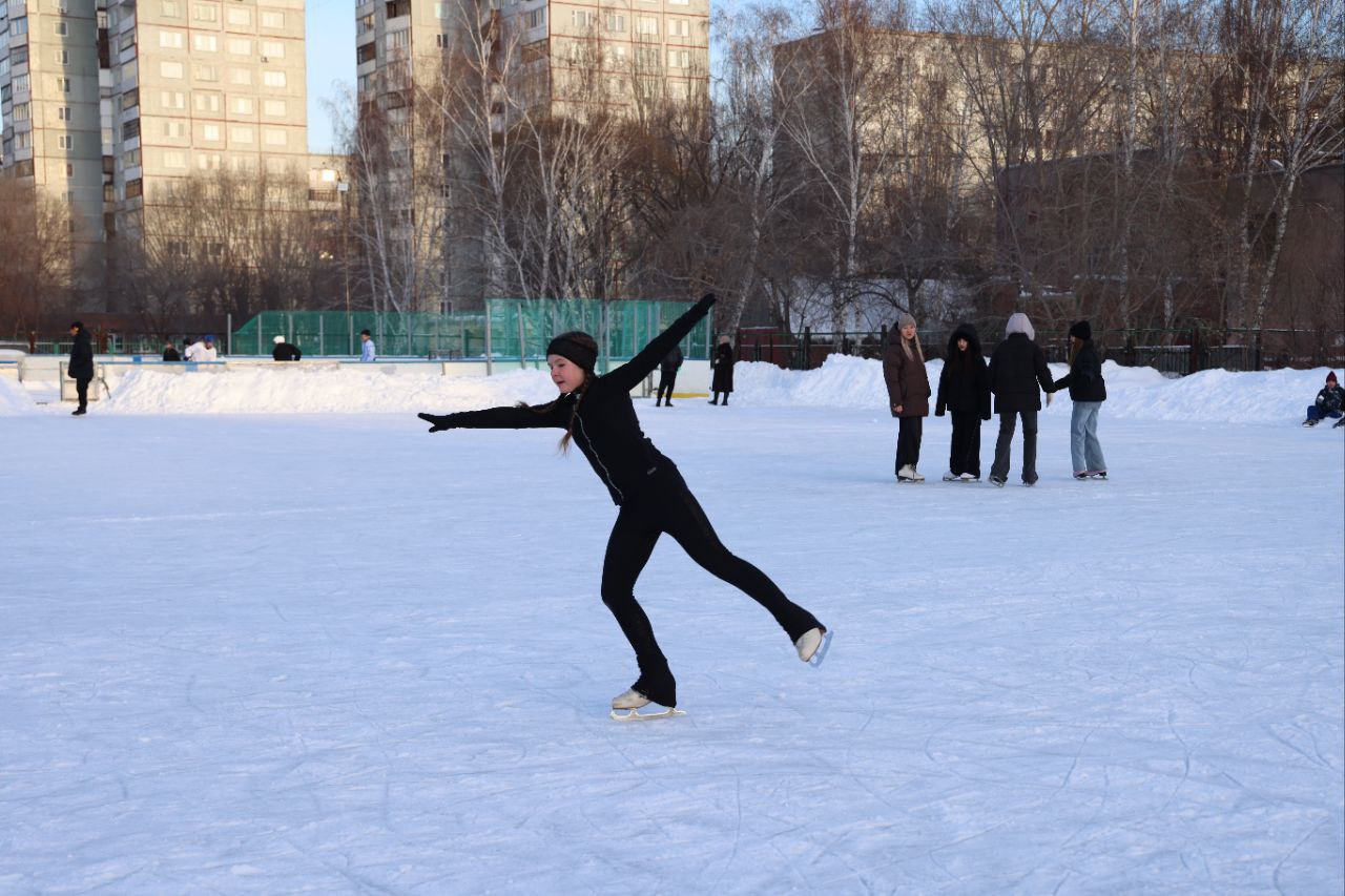 Бесплатные катания на коньках сегодня были организованы на льду у дворца имени Леонида Киселёва