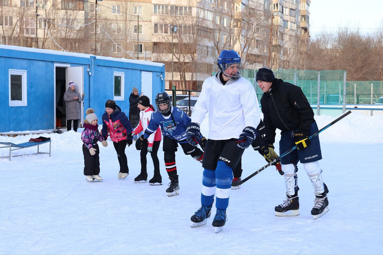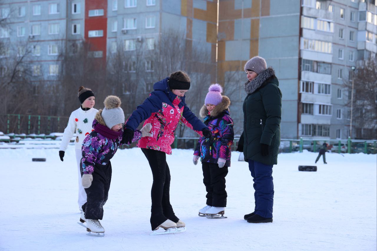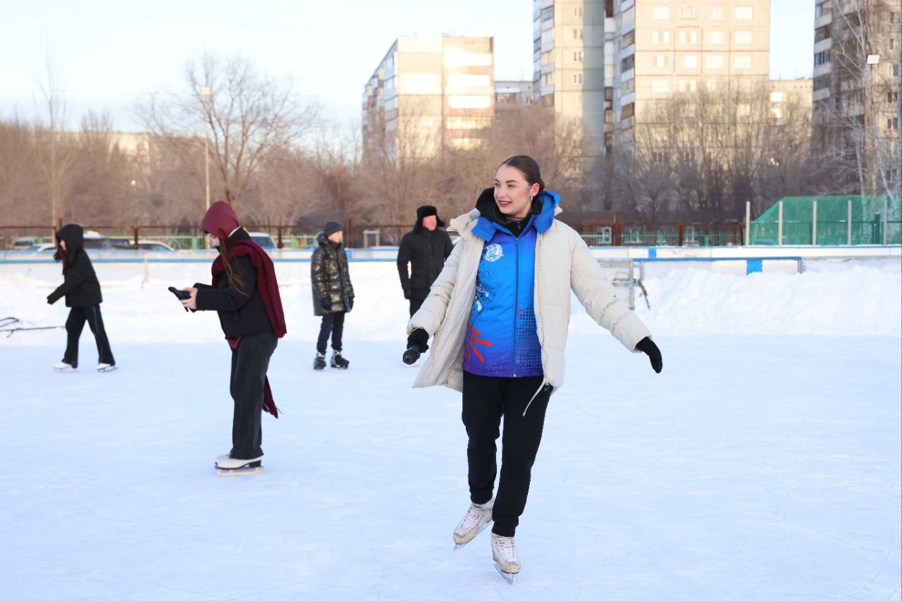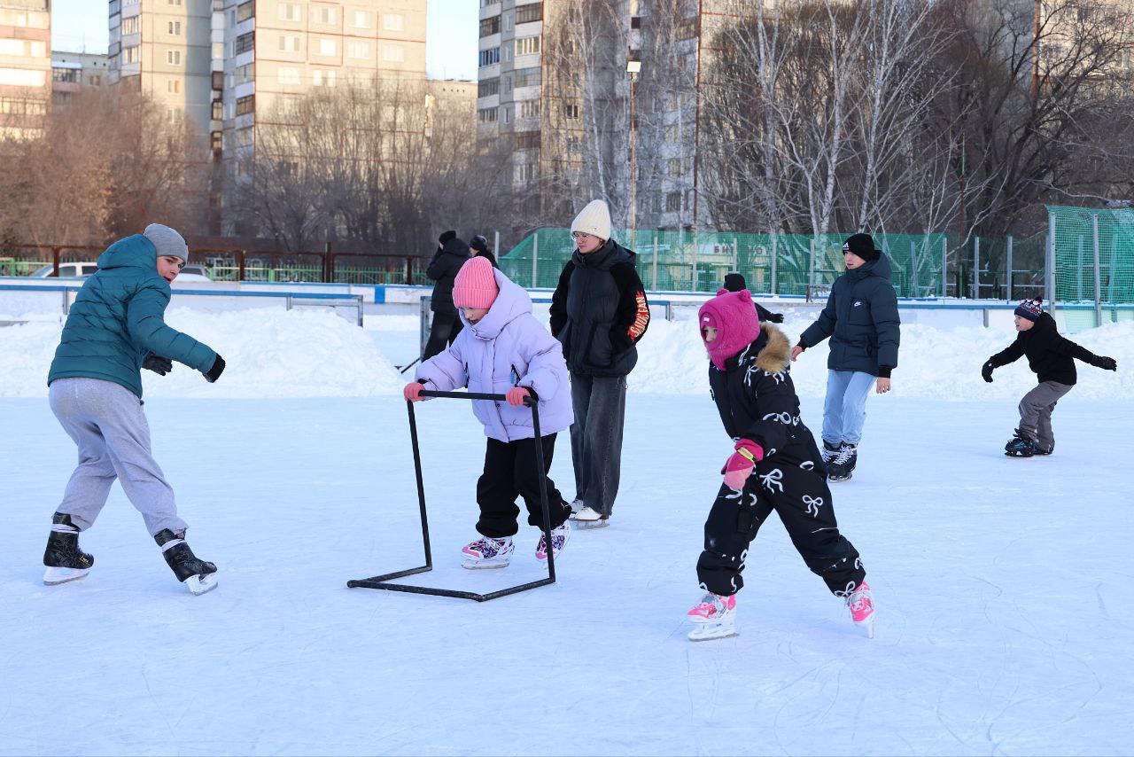 Бесплатные катания на коньках сегодня были организованы на льду у дворца имени Леонида Киселёва