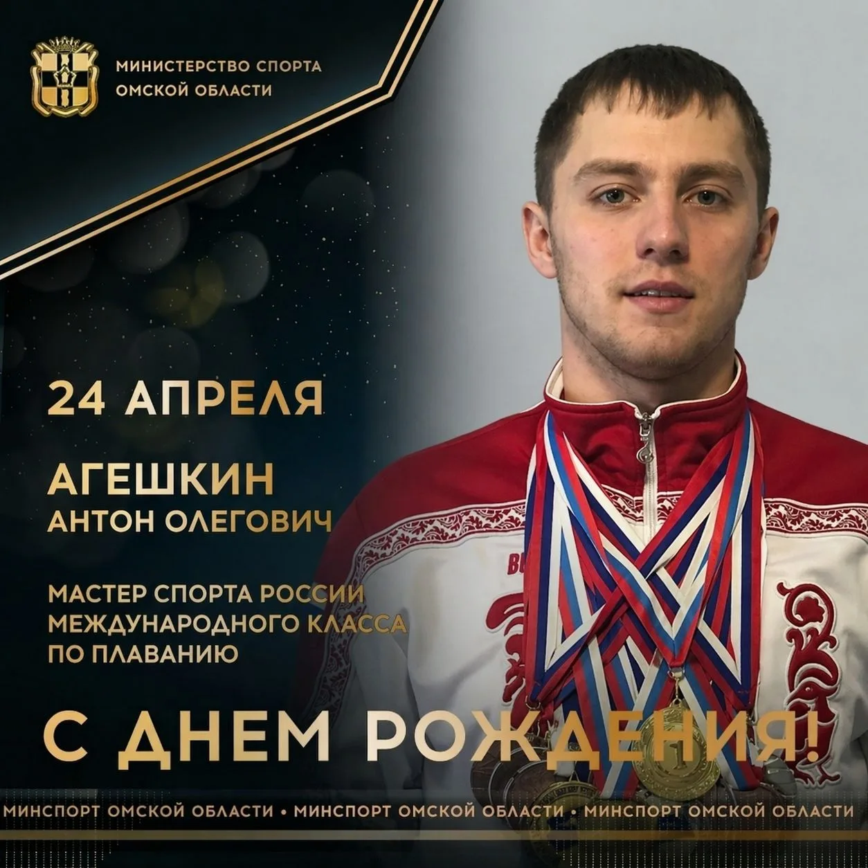 Сегодня ДЕНЬ РОЖДЕНИЯ отмечает мастер спорта России международного класса по плаванию, неоднократный победитель и призер чемпионатов и первенств России и СФО по плаванию, победитель и призер чемпионата Европы среди полицейских, бронзовый призер финальных соревнований III летней Спартакиады молодежи России Антон Агешкин.