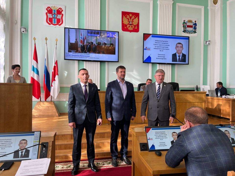 На пленарном заседании председатель Омского городского Совета Владимир Корбут вручил удостоверения и знаки двум новоизбранным депутатам Дмитрию Шарушинскому (избирательный округ № 11) и Александру Сальникову...